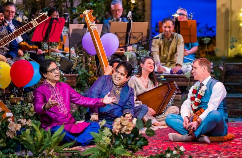 Set in a leafy garden bursting with colour, be mesmerised as the trumpet and theorbo meet the sitar and the santoor in a moving musical encounter between East and West.